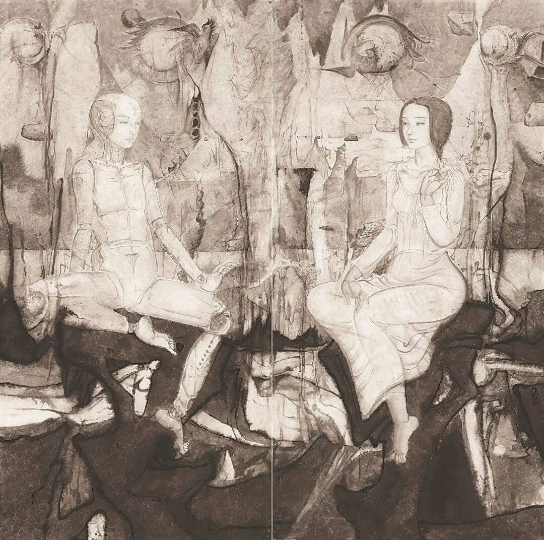 在“AI+”作为2025年中国社会发展引擎的语境下,美术界也出现了两种声音。一种是积极运用数智科技进行新艺术探索。如第三届济南国际双年展以“人智时代”为主题,吸引了线万、线亿的流量;中国美术学院美术馆举行的“黑神铸炼”——《黑神话:悟空》艺术展全景式呈现了游戏《黑神话:悟空》从概念设计、原画、雕塑到场景构建的完整艺术创作链条,探索数字艺术与传统文化的融合,在社会上引发强烈反响;第30届广州国际艺术博览会暨2025世界艺术IP大会以“艺术IP动能转化”为核心,汇聚海内外数万件作品,有效链接艺术与产业;而北京双年展首次设立国际数字艺术特展,并以“人智共生”为主题,表达了数字的“智能”与人类的“感能”彼此塑形的艺术理念。另一种观点则认为,艺术创作的本质是表现人的精神情感,并通过手对心灵的传递,最大限度地发挥人手的创造力而实现感知表现,尤其是中国艺术对虚静的崇尚,笔墨所承载的人文品格远非视觉观看可以替代,这和科技进步特别是视觉机器或数字视觉的发达并不构成直接关联。相反,应警惕这种机械视觉或数字视觉对人类感知经验的干扰和损伤,这种停留于视网膜刺激层面的艺术探索,是喧嚣浮躁心态的暴露。因此,水墨画、油画、版画、漆画、水彩和雕塑等本体语言的独立性、历史性等艺术品质再度被学界提出,甚至中国国家画院策划了“中国百年素描——学术邀请展(第一回)”,以此回应对AI图像生成的反思。中国画不仅仅有倡导水墨媒介变革的当代性特征,也有不断追求“古意”,“以古为新”“与古为徒”的当代风貌。